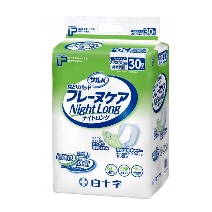 【白十字】PUサルバ フレーヌケア ナイトロング おむつ 介助で起こせる 寝て過ごす オムツ パッド ナプキン 消臭 抗菌 履き心地 消臭 抗菌 失禁 介護 介助 看護 929045