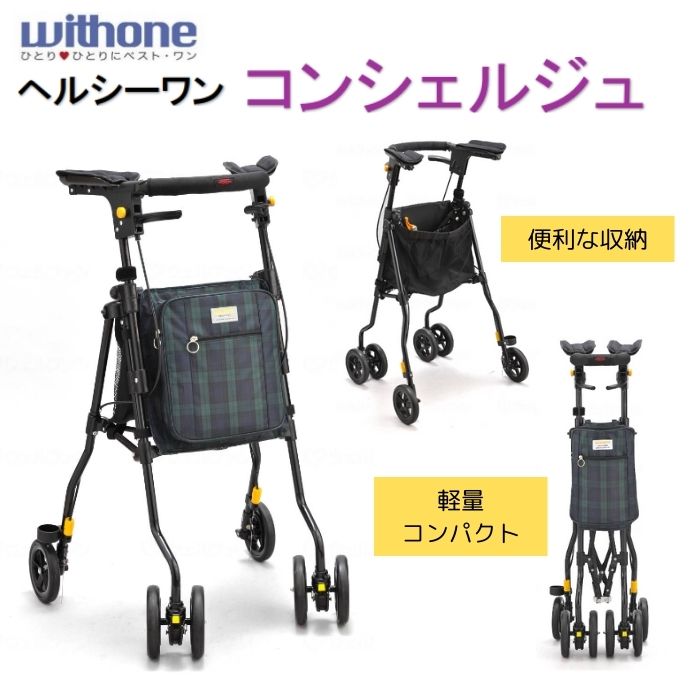 【メーカー直送品】【ウィズワン】ヘルシーワン コンシェルジュ 軽量 軽い おしゃれ 歩行器 歩行車 安心 女性 男性 折りたたみ 介護 介助 リハビリ 311862