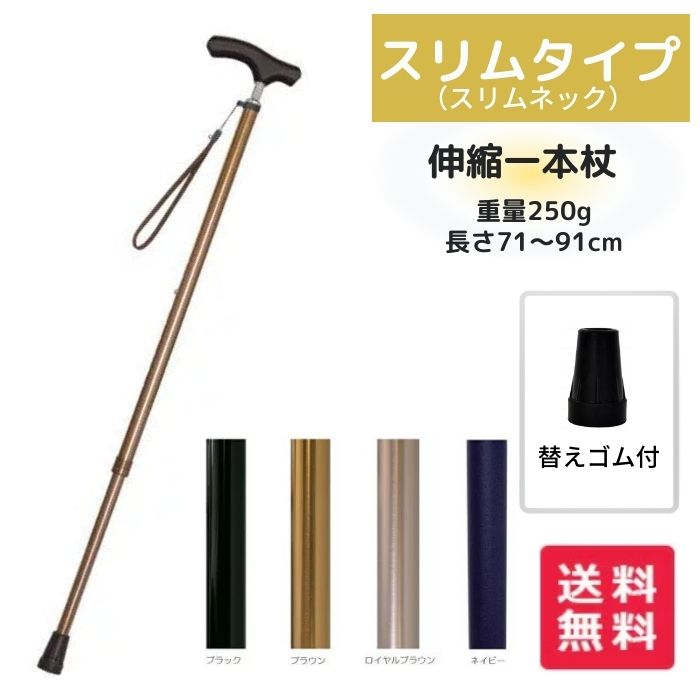 【送料無料】ウェルファン 夢ライフステッキ スリムネック 伸縮スリムタイプ 無地 杖 歩行 移動 一本杖 軽量 伸縮杖 SGマーク付き【送料無料】 009731 (camcode-5385)