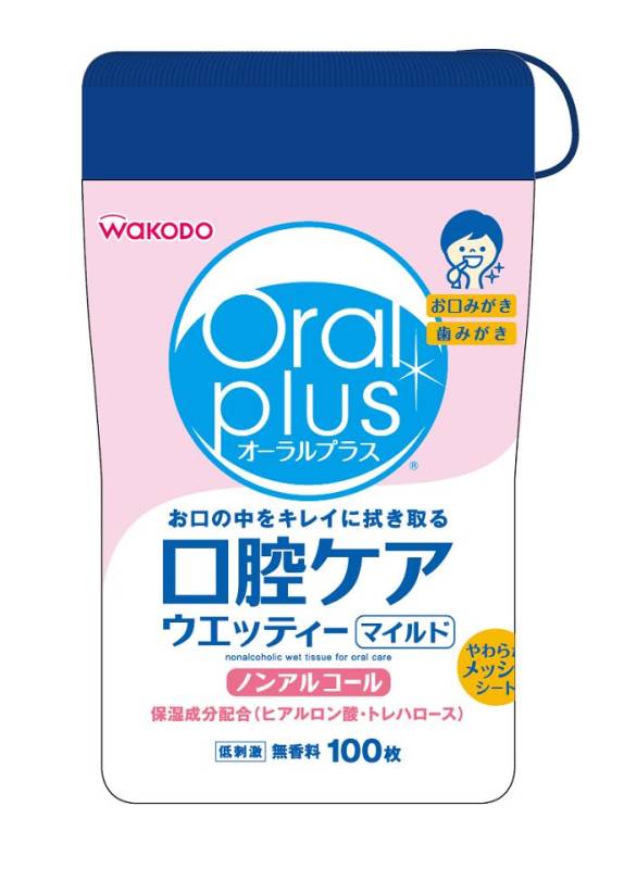 和光堂 オーラルプラス 口腔ケアウエッティマイルド 100枚入 お口の中をキレイに拭き取る 口臭予防 キシリトール ミント 爽快 エチケット 介護 820043