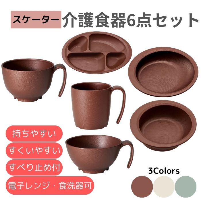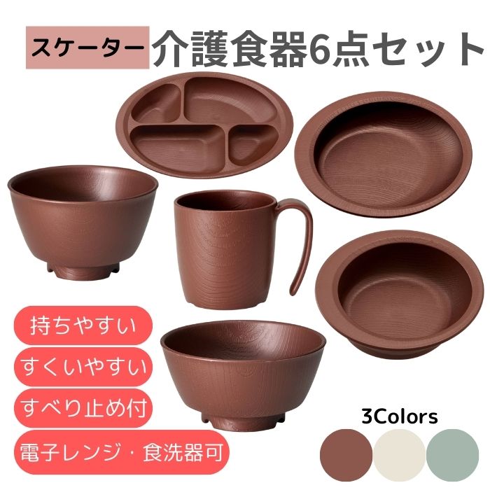 【スケーター】介護食器6点セット 食事 プラスチック 木目調 軽い 電子レンジ 食洗器 対応 可能 便利 安全 介護 看護 介助 食器 割れにくい 持ちやすい すくいやすい 181207