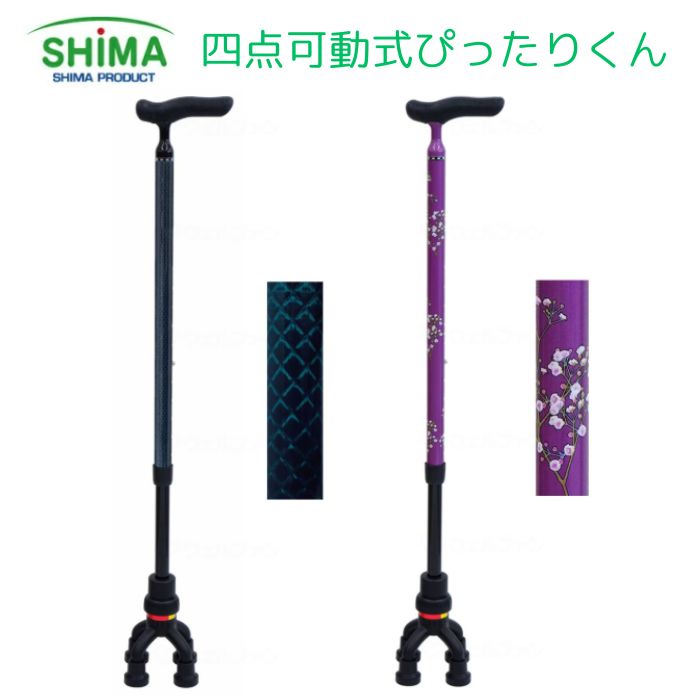 【送料無料】島製作所 四点可動式オン・オフさん ステッキ おしゃれ 杖 歩行 移動 多点杖 一本杖 年寄り 誕生日 敬老の日 握りやすい 安心 316466