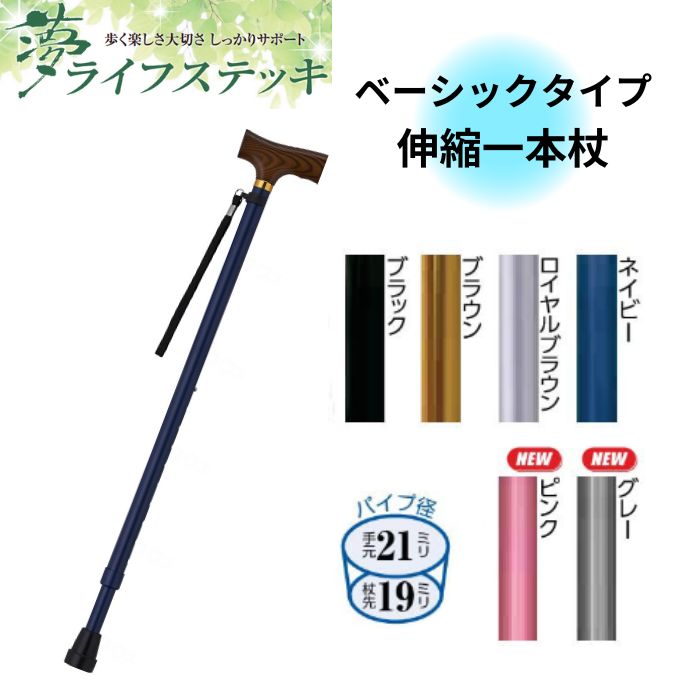 【送料無料】ウェルファン 夢ライフステッキ 伸縮型 スリムタイプ 無地 杖 歩行 移動 一本杖 軽量 伸縮杖 売れ筋 人気 贈り物 年寄り 誕生日 老人 高齢者 お出かけ 外出 室内 握りやすい 安心 009711 (camcode-5385)