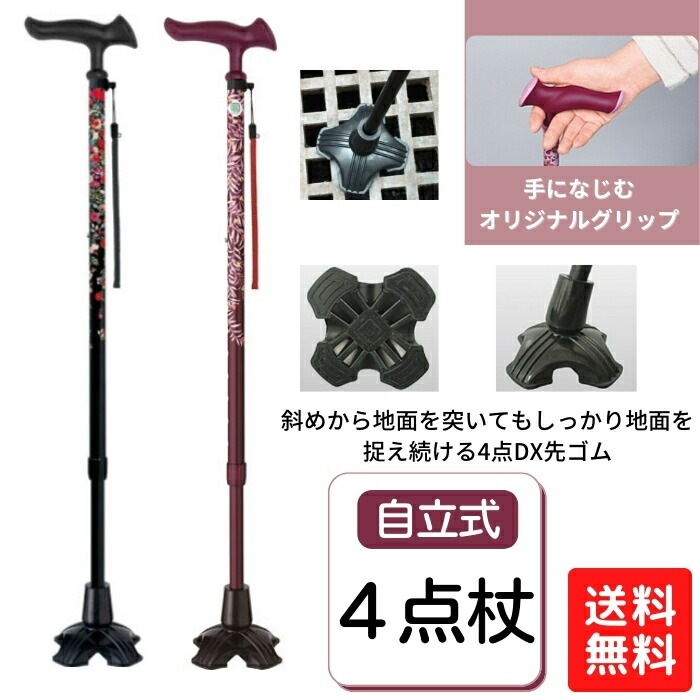 【送料無料】フジホーム かるがもファムⅡ 4点DX 杖 歩行 移動 多点杖 伸縮 自立式 移動 ステッキ 安定感 補助 介護 介助 看護 多脚 四点 おしゃれ 女性 花柄 レディース 386262