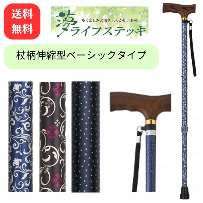 ★ランキング入賞★【送料無料】ウェルファン 夢ライフステッキ スリムネック 伸縮スリムタイプ 柄 杖 歩行補助 オシャレ ミセス シニア アルミ 売れ筋 人気 年寄り 誕生日 お出かけ 外出 室内 安心 SGマーク 009734