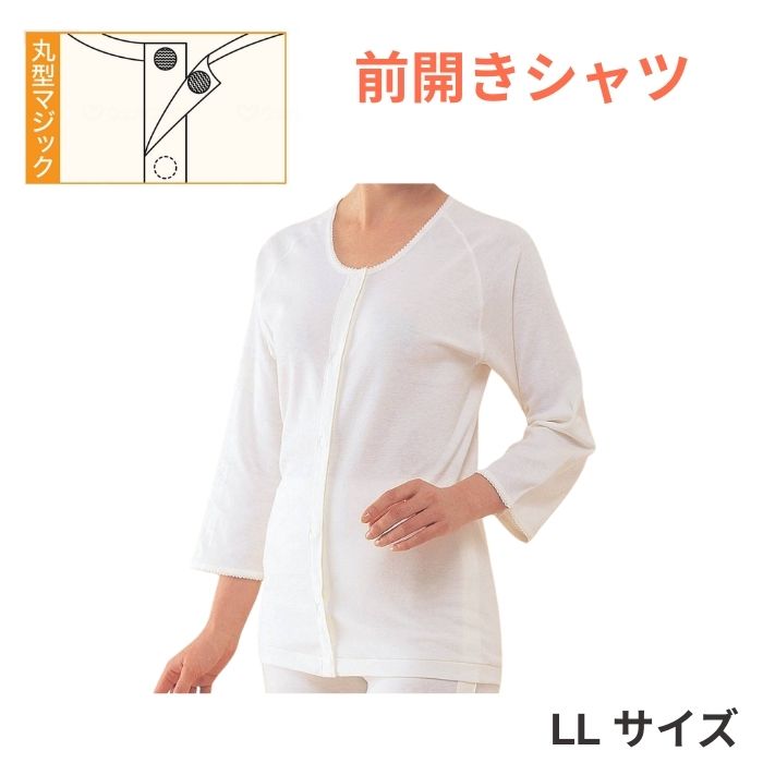 【神戸生絲】婦人前開き両肩腕開き7分袖 オフホワイト LL No.53 921338