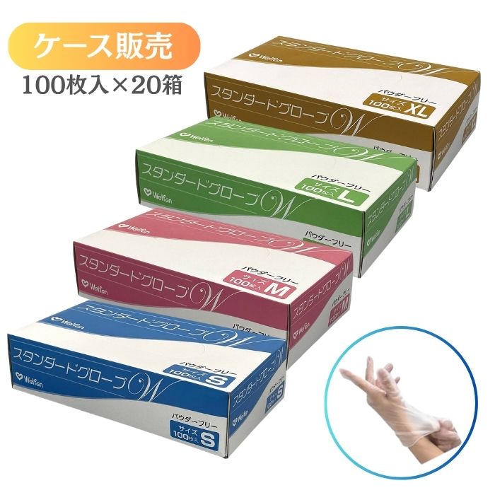 【送料無料】【ウェルファン】スタンダードグローブW パウダーフリー 100枚 極薄タイプ 素肌感覚 ゴムアレルギーの方も安心 粉なし 介護 介助 看護 000910