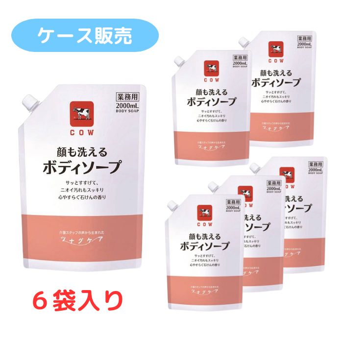 【送料無料】【ケース販売】【牛乳石鹸共進社 株式会社】カウブランド ツナグケア 顔も洗えるボディソープ 2000ml×6袋入り 175701