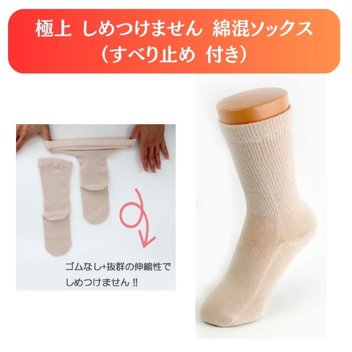 神戸生絲 婦人極上しめつけません綿混ソックス 靴下 着圧 やわらか 暖かい 女性用 ソックス 介護 介助 看護 しめつけない ゴムなし 921427