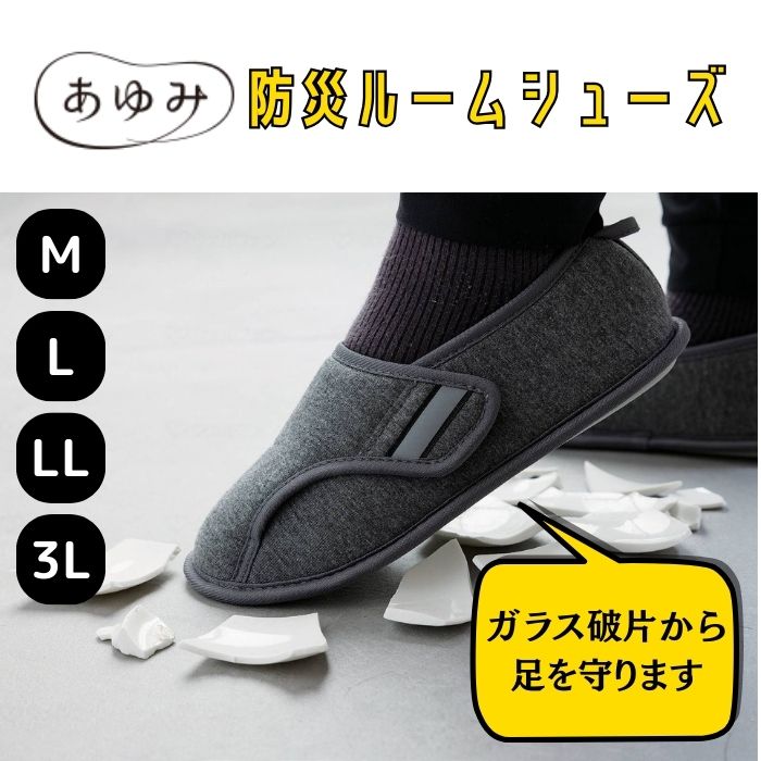 【徳武産業】防災ルームシューズ あゆみ 防災 避難 避難所 ガラス片 非常時 災害 防災グッズ 災害グッズ 足を守る ケガ ケガ防止 怪我 怪我防止 室内用 普段使い 介護 転倒予防 リハビリ 靴 反射材 マジックテープ 201493