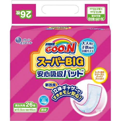 【大王製紙】グーン スーパーBIG 安心吸収パッド 尿とりパッド パッド パット オムツ ナプキン 大人 高齢者 子ども 大人用 子ども用 失禁 介護 介助 看護 病院 入院 施設 875522