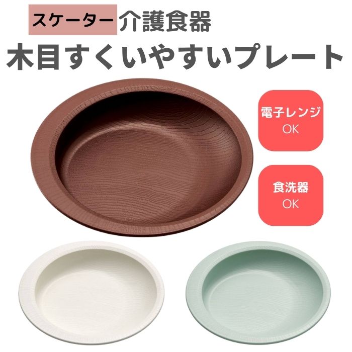 【スケーター】木目すくいやすいプレート 食事 プラスチック 木目調 軽い 電子レンジ 食洗器 対応 可能 すくいやすい 便利 安全 介護 看護 介助 食器 割れにくい 181207