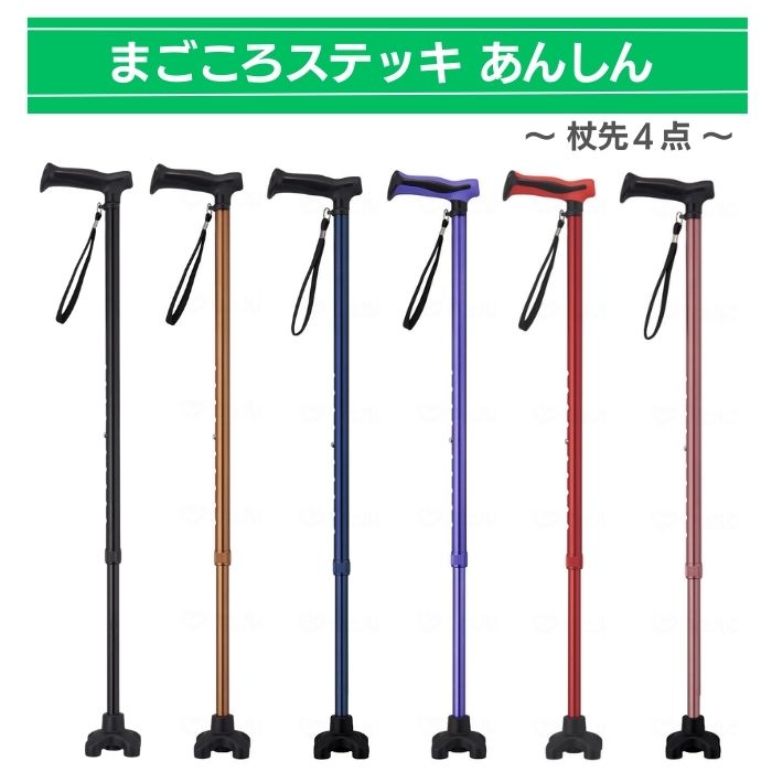 【送料無料】【ウェルファン】まごころステッキあんしん 杖先4点 伸縮タイプ 杖 ステッキ おしゃれ 多点杖 男性 女性 009794