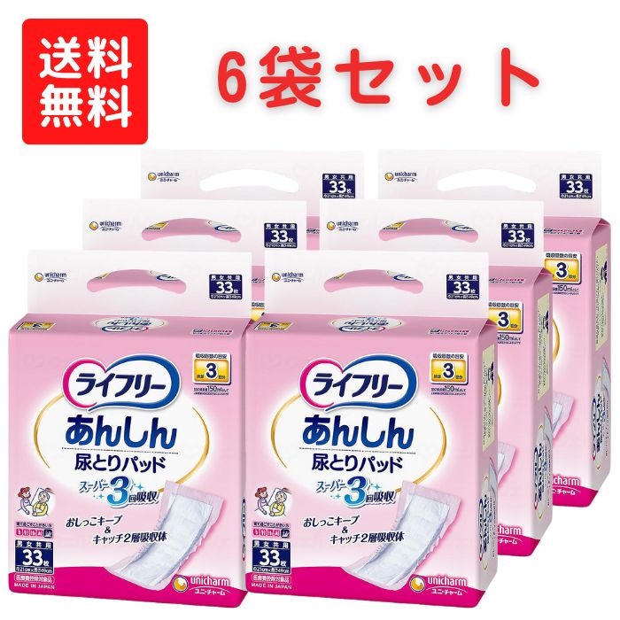 【ユニ チャーム】ライフリー あんしん 尿とりパッド スーパー 男女共用 33枚 6袋 ケース販売 882326
