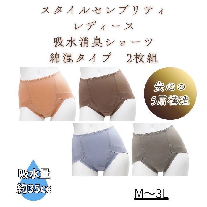 【辻一】スタイルセレブリティ レディース 吸水消臭ショーツ 綿混タイプ 2枚組 失禁パンツ 尿漏れパンツ 排泄関連用品 介護 介助 看護 女性 吸水 抗菌防臭 消臭 787709