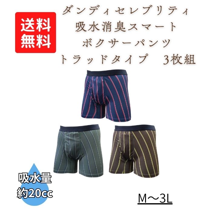 【送料無料】【辻一】ダンディセレブリティ 吸水消臭スマート ボクサーパンツ トラッドタイプ 3枚組 失禁パンツ 尿漏れパンツ 排泄関連用品 介護 介助 看護 男性 吸水 消臭 787706