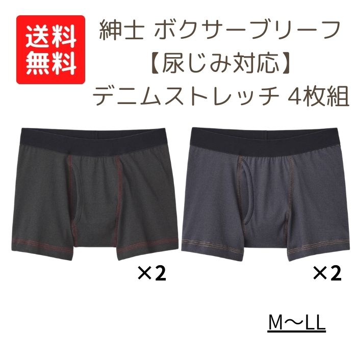 【送料無料】【グンゼ】紳士 ボクサーブリーフ 尿じみ対応 デニム 4枚組 失禁パンツ 尿漏れパンツ 排泄関連用品 介護 介助 看護 男性 撥水 抗菌防臭 シミ防止 ゆったり設計 937304