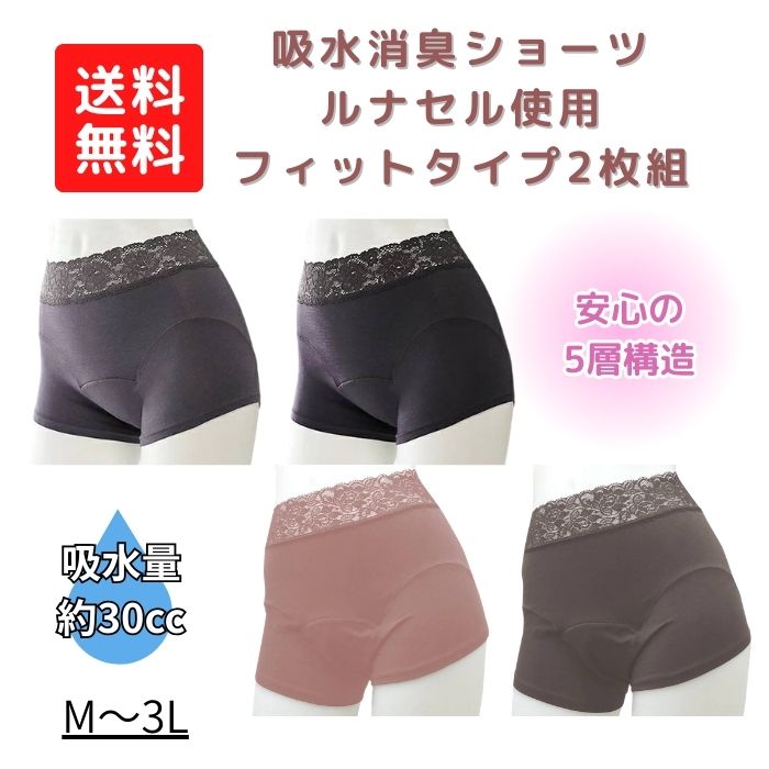 【送料無料】【辻一】ルルオアーゼ 吸水消臭ショーツ ルナセル使用 フィットタイプ 2枚組 失禁パンツ 尿漏れパンツ 排泄関連用品 介護 介助 看護 女性 吸水 消臭 787708